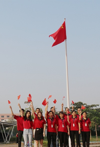 为热烈庆祝新中国成立70周年,充分激发全体员工的爱国主义情怀,2019年9月30日上午,开云手机入口 - 开云中国全资子公司深圳市中诺通讯有限公司在东莞以诺工业园区举行了庄严的升国旗仪式。几千名员工身着统一红色司服,排着整齐的方阵。伴随着雄壮的国歌声,鲜艳的五星红旗冉冉升起,全体员工满怀崇敬之情向国旗行注目礼,爱国爱企的激情在大家心中激荡。升旗仪式结束后,公司还组织员工开展“我与国旗”同框合影活动。