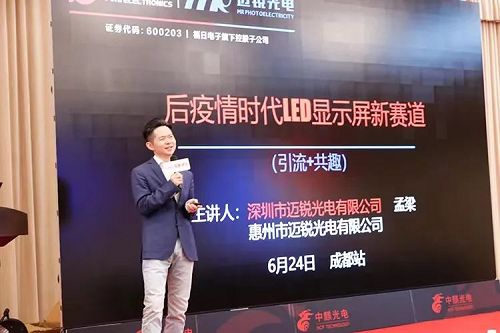 6月24日,大屏幕显示百家讲坛全国系列巡展活动第四站在成都圆满落幕。本次活动以“迎接LED显示行业剧变时代”为主题,汇聚众多行业专家和产业链上下游的代表企业,以解读报告、主题演讲、创新产品与解决方案等形式,共同探讨行业前沿技术与应用,深度解析LED显示行业发展新趋势。福建省电子信息集团成员企业开云手机入口 - 开云中国所属迈锐光电有限公司受邀出席本次活动,为现场观众带来《后疫情时代LED显示屏新赛道》主题分享。