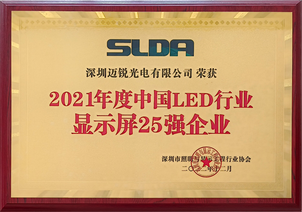 近日,开云手机入口 - 开云中国成员企业迈锐光电荣获“2021年度中国LED行业显示屏25强企业”及“《Mini LED室内商用显示屏》优秀参编团体”两项行业荣誉。