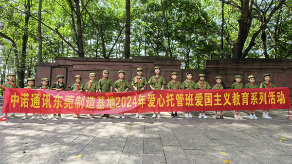 此外,中诺通讯党工团建设部特别策划了“爱国主义教育系列活动”。孩子们参观了广东东江纵队纪念馆,深入了解革命先烈的英勇事迹,激发了他们的爱国热情;学唱红歌《我的祖国》,用稚嫩的歌声表达对祖国的祝福;学习军姿军礼,在公司退伍军人唐有伍的指导下,孩子们通过站军姿、敬军礼,向祖国致以崇高的敬意。沉浸式的教育模式,让孩子们在“学中玩、玩中学”中增长了见识,体验了乐趣,在他们幼小的心灵里种下了爱国的种子。活动结束后,孩子们还用文字和画笔记录了自己的所见所感,色彩描绘出心中的祖国。此次托管班不仅为职工子女提供了优质的暑期托管服务,更在寓教于乐中激发了孩子们的爱国情怀,成为东莞托管班的一大特色。