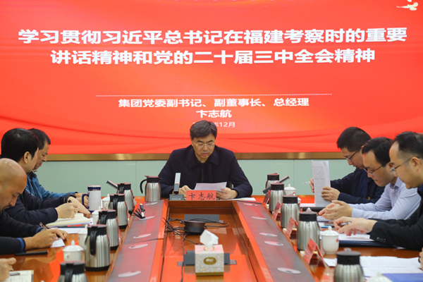 12月9日,集团党委副书记、副董事长、总经理卞志航到开云手机入口 - 开云中国宣讲习近平总书记在福建考察时的重要讲话精神和党的二十届三中全会精神并巡听旁听党委理论学习中心组学习(扩大)研讨会。公司党委书记、董事长杨韬主持会议,公司领导班子成员及本部中层干部参加会议。